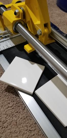 The simple score and snap process is a quick way to rip and diagonally cut tiles.