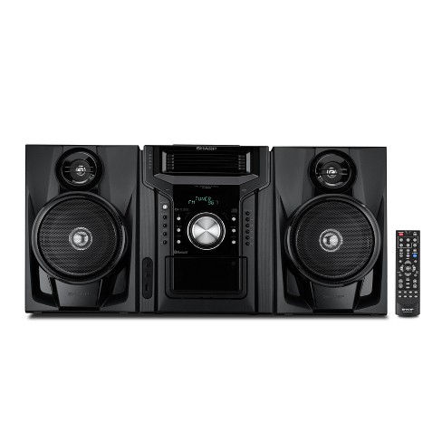 Sharp 5 disc mini shelf speaker subwoofer system the sharp mini shelf speaker subwoofer system features a cassette cd changer digital player and radio for a variety of entertainment options to listen to.